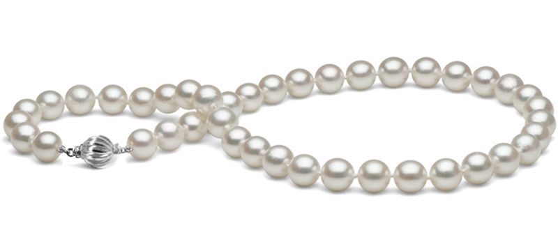 | Collier 45 cm de perles de culture d'Akoya 8,0 à 8,5 mm blanches AAA fermoir or gris 14K | ||