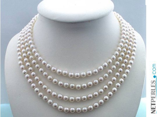 Collier quatre rangs 40-42-44-46 cm de perles d'Akoya 6-6,5 mm