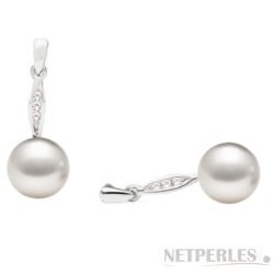 Boucles d'oreilles en Or 14 carats avec diamants et perles d'Australie blanc argenté, diamètre des perles à partir de 9-10 mm, qualité AAA