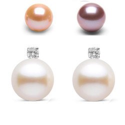 Boucles d'Oreilles Or 18k diamants perles Doucehadama 9-10 mm ou 10-11 mm