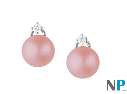 Boucles d'Oreilles "Réflexion" en perles de culture d'Eau Douce bien rondes, de qualité Doucehadama, au choix dans les couleurs naturelles des perles d'eau douce: blanches, roses pêches ou lavandes. Les boucles d'oreilles sont en Or 18k travaillé avec deux diamants, en total de 0,10 carats, de qualité VS1. Disponibles en Or Jaune ou en Or Gris 18 carats. Poids de l'or 18k: 1,12 grammes. Les perles mesurent de 8 à 9 mm ou en option de 9 à 10 mm. Si vous souhaitez des perles de 10 à 11 mm il faut d'autres montures adaptées aux grandes perles dans cette même collection avec la référence BO-REFLEXION2-18K-EDH