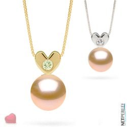 Pendentif coeur Or 14 carats et diamant avec perle rose pêche d'eau douce DOUCEHADAMA à partir de 7 à 8 mm, Or jaune ou Or Gris