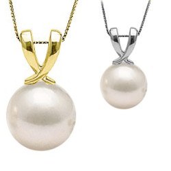 Pendentif Or 14 carats avec perle de culture d'Akoya blanche AAA