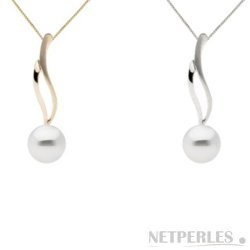 Le pendentif est en Or 14 carats, il est disponible en Or Jaune, pour un bijou classique, ou en Or Gris, très élégant avec les perles blanches.