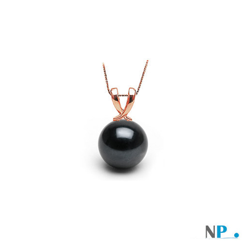 Pendentif Or Rose 18 carats avec perle de culture d'Eau Douce blanche, noire, pêche ou lavande, Qualité AAA, diamètre de la perle à partir de 8 à 9 mm
