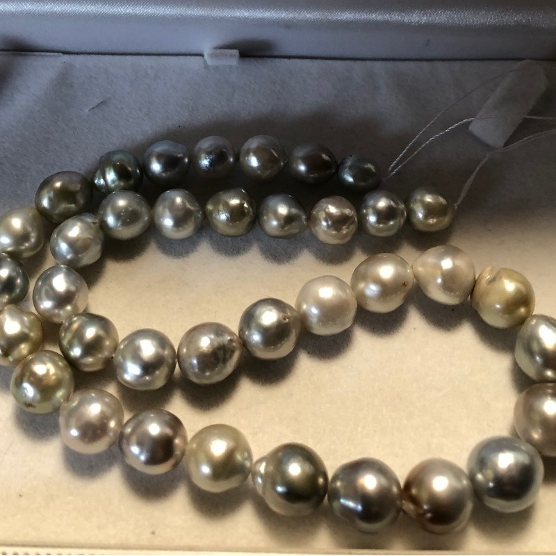 Collier 43/44 cm de perles baroques de Tahiti 8,5 à 10,9 mm qualité AA tons clairs