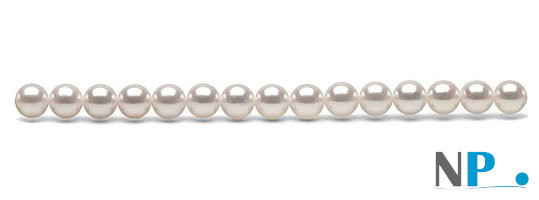 Rang 40 cm non monté de perles de culture d'Akoya du Japon de 6-6,5 mm qualité AA+ ou AAA. Fourni sans nœuds ni fermoir, un rang de 40 cm permet de monter un collier de 45 cm avec noeuds et fermoir