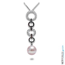 Pendentif original en Or 18 carats (jaune ou gris) serti de diamants pour 0,25 carats au total sur deux des anneaux le composant mettant en valeur, par la forme du pendentif, la perle lavande (couleur naturelle) d'Eau Douce à partir de 8 à 9 mm de qualité AAA