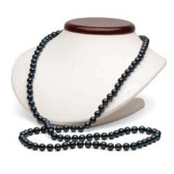 Collier de perles de culture d'Eau Douce noires de 130 cm