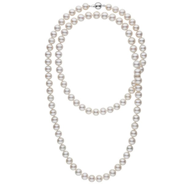 Long collier de perles de culture d'Eau Douce Blanches qualité AA+ ou AAA longueur de 114 cm diamètre de 9 à 10 mm