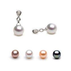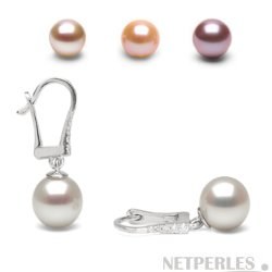 | Boucles d'Oreilles de perles d'Eau Douce Métalliques Blanches 7-8 mm AAA | |
